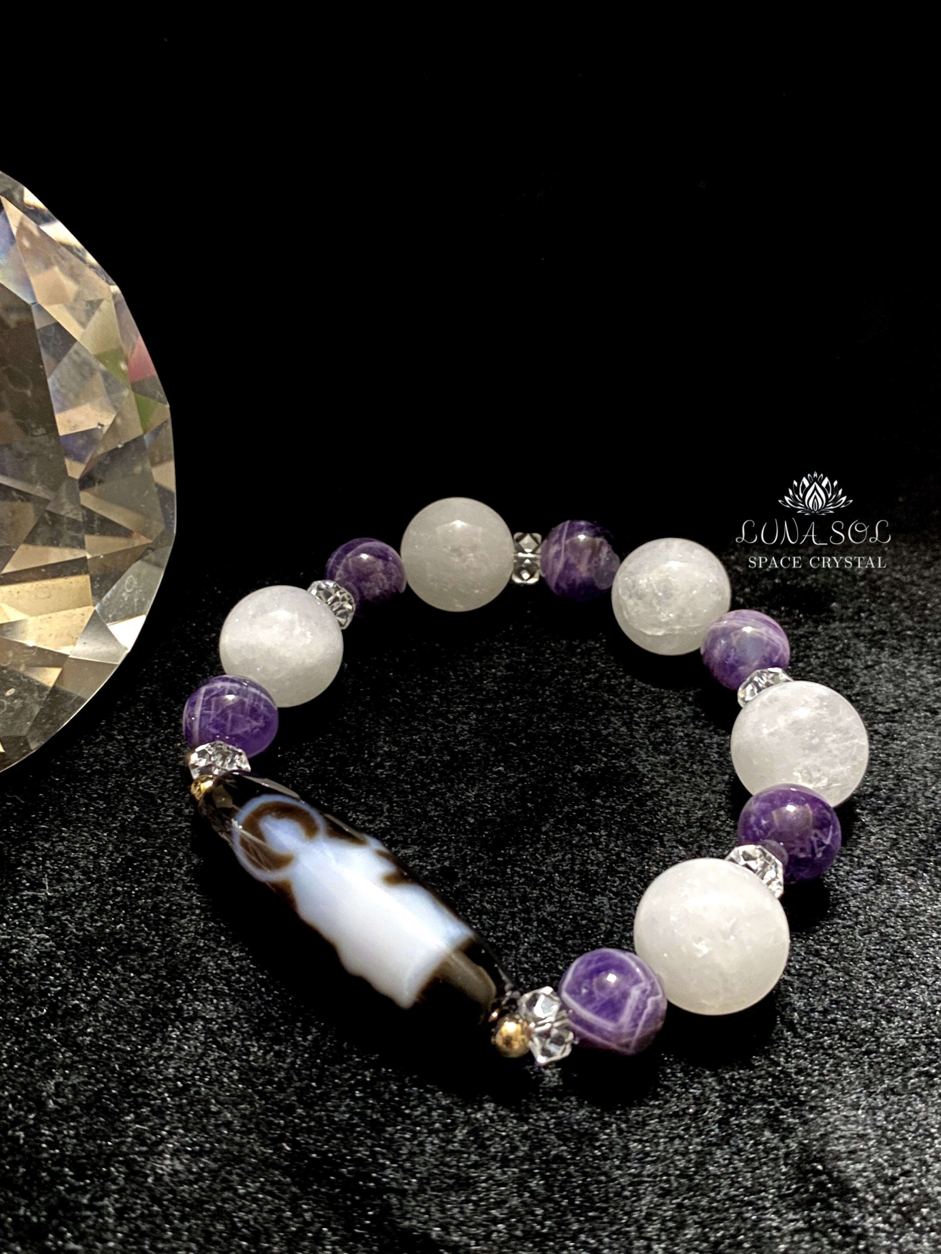 至純弁財天天珠に、高波動のアゼツライトとアマゼツアゼツライトアメジストを組み合わせました。