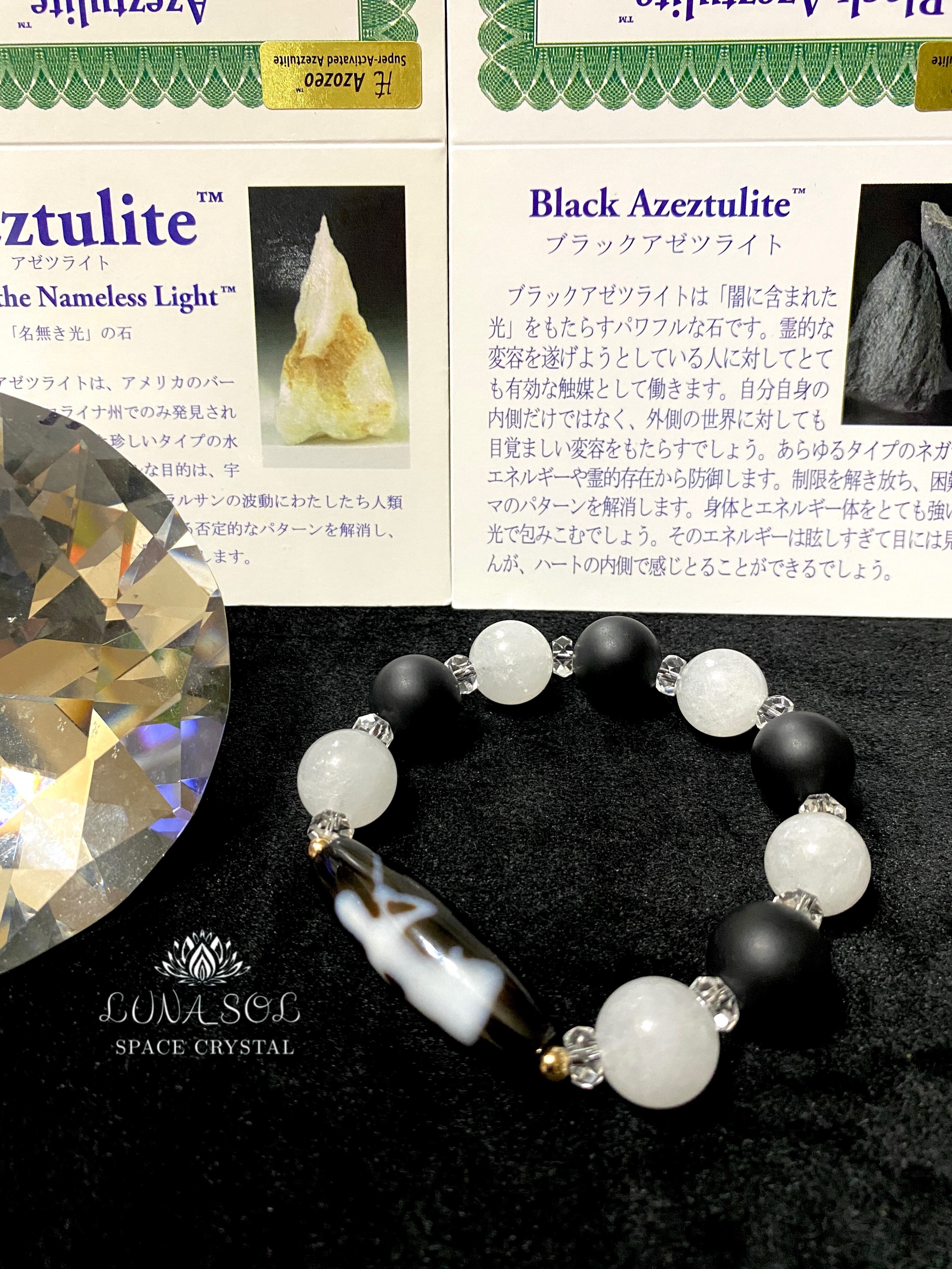 琵琶観音天珠にエナジーが強い高波動のアゼツライトとブラックアゼツライトの組み合わせにしました。