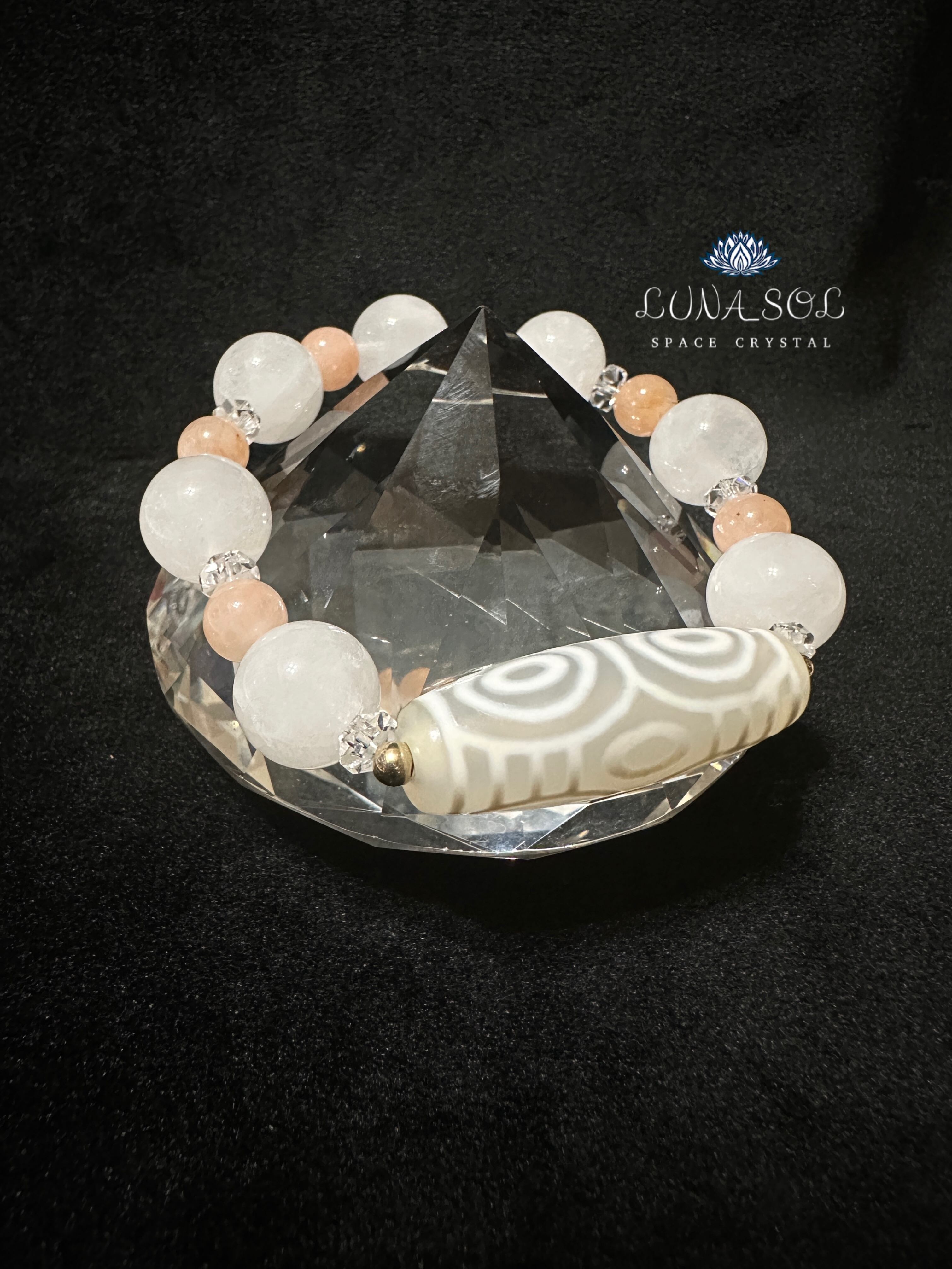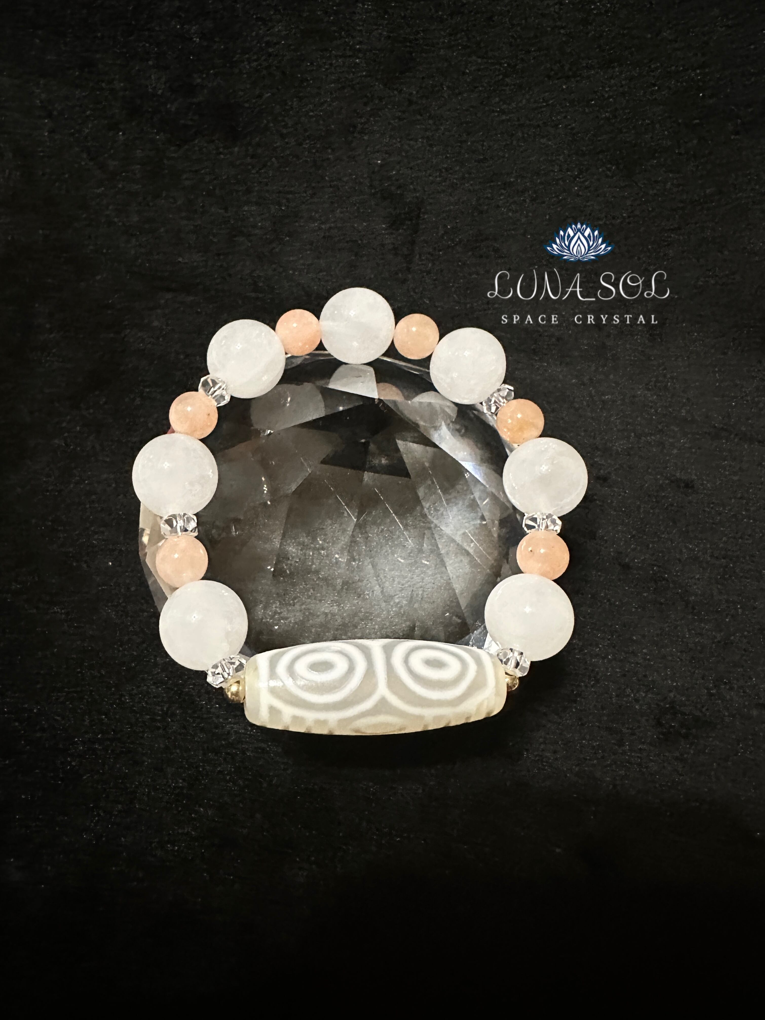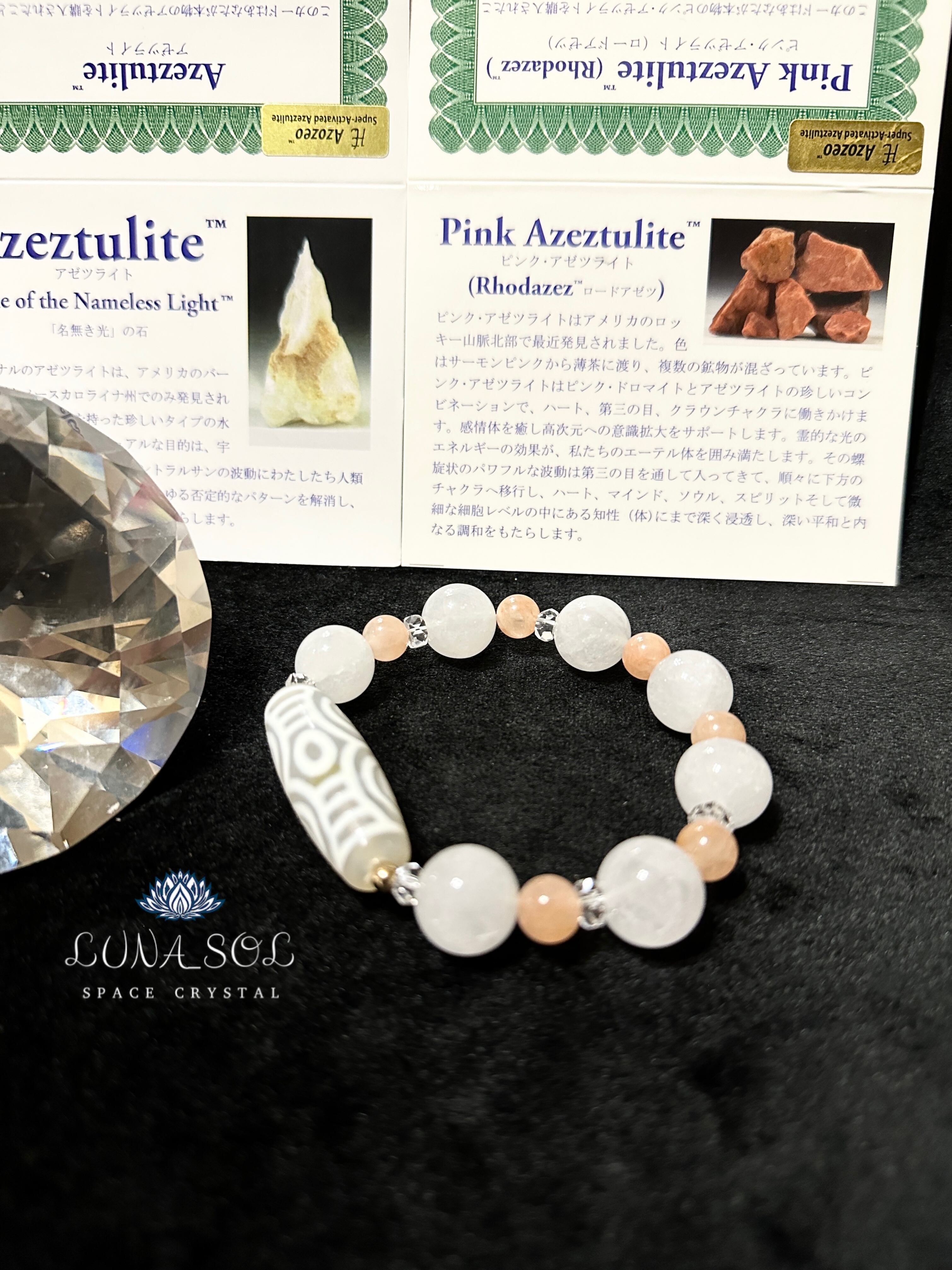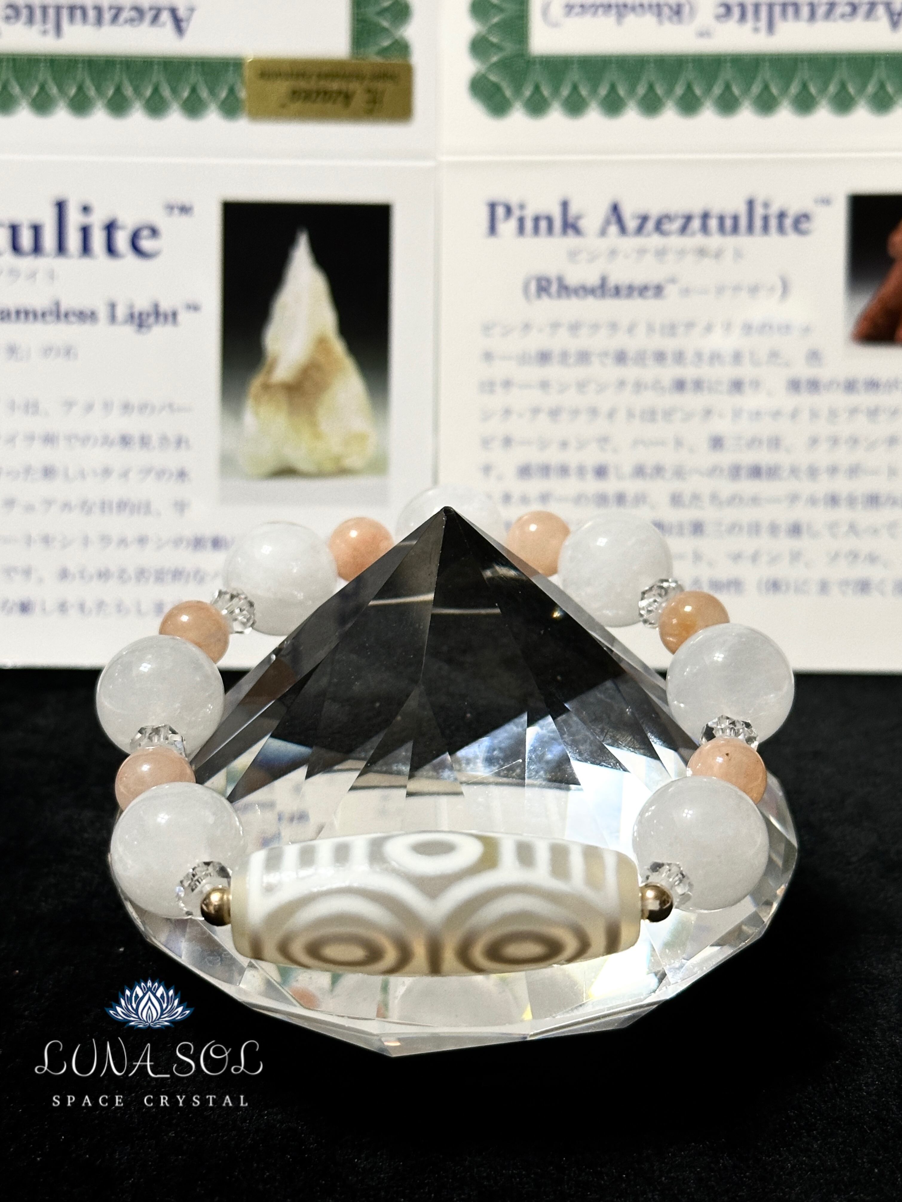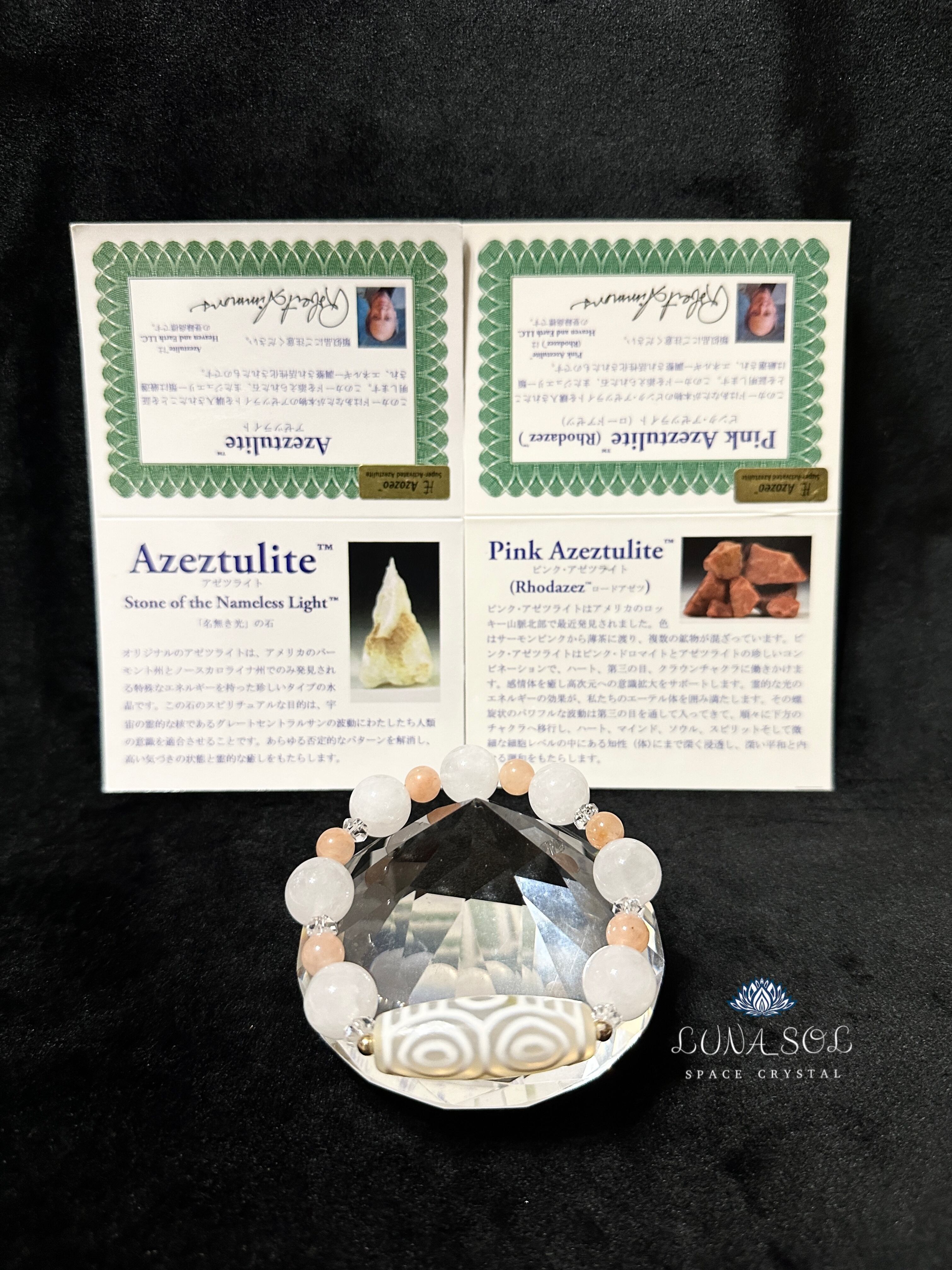 白龍眼天珠に高波動のピンクアゼツライトとホワイトアゼツライトと組み合わせました。